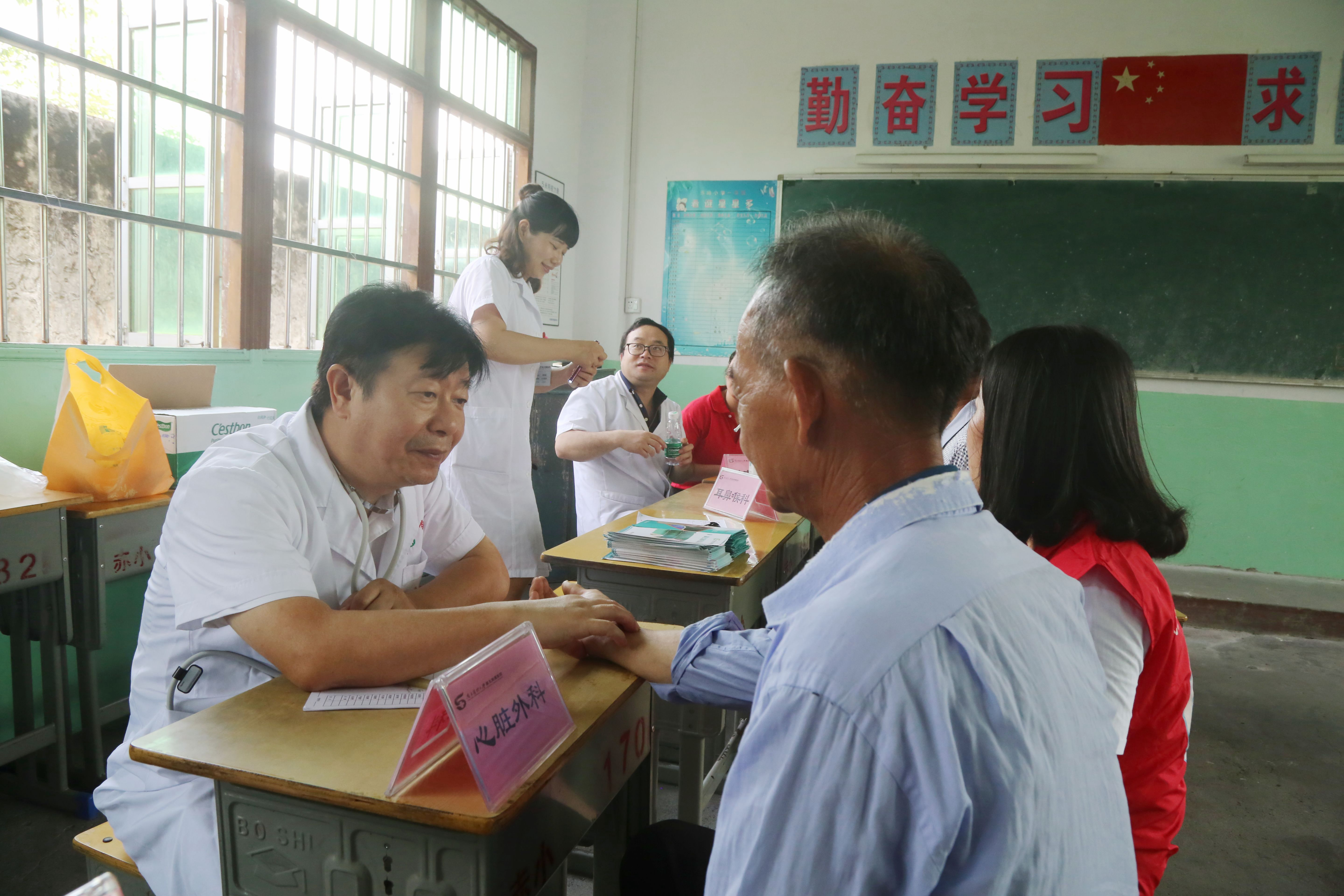 “听说大医院的专家来村里看病了,这么好的机会,一定要去看看!”7月16日中午,专家们还没到来,后洋村的村民已经沸腾了,他们互相转告着这个好消息,并提前赶到活动场地等候。 下午2点,尽管专家们经过长途奔波很疲惫,天气又十分炎热,但是他们一到达目的地,便马上投入工作,认真细致地为村民做检查,热情耐心的解答每一个问题。对于病情严重的患者,在开导劝慰之余,建议他们最好到医院做更详细的检查。专家们还向村民普及简单实用的医学知识,希望在今后的生活中给他们带来帮助。 在活动进行中,来了一位特殊的村民,她叫杨牡丹,今年84岁,因为患有严重的腰椎间盘突出症,只能扶着特制的铁架子行走,虽然义诊地点离她家不到1公里,但她走了1个多小时。邹小明看到她从远处走过来,马上安排人员前去搀扶。关节外科主任潘乘龙对她认真检查后,建议其家人带着她去医院做磁共振检查,便于更好的诊疗。随后工作人员将她送回家。 89岁的温前进在家人的搀扶下来到义诊现场,据介绍,老人年轻时曾是中国人民解放军战士,在战争中光荣负伤,最近一段时间感到有些胸闷,专家为他做了心电图、彩超检查,叮嘱应注意的事项,送给他一些药品。 第二天一大早,专家团队又赶赴另一个活动地——凤江镇赤新村。专家们热情接待每一位前来咨询和检查的村民,让他们更加了解自己的健康状况,做到疾病早预防、早发现、早治疗。
