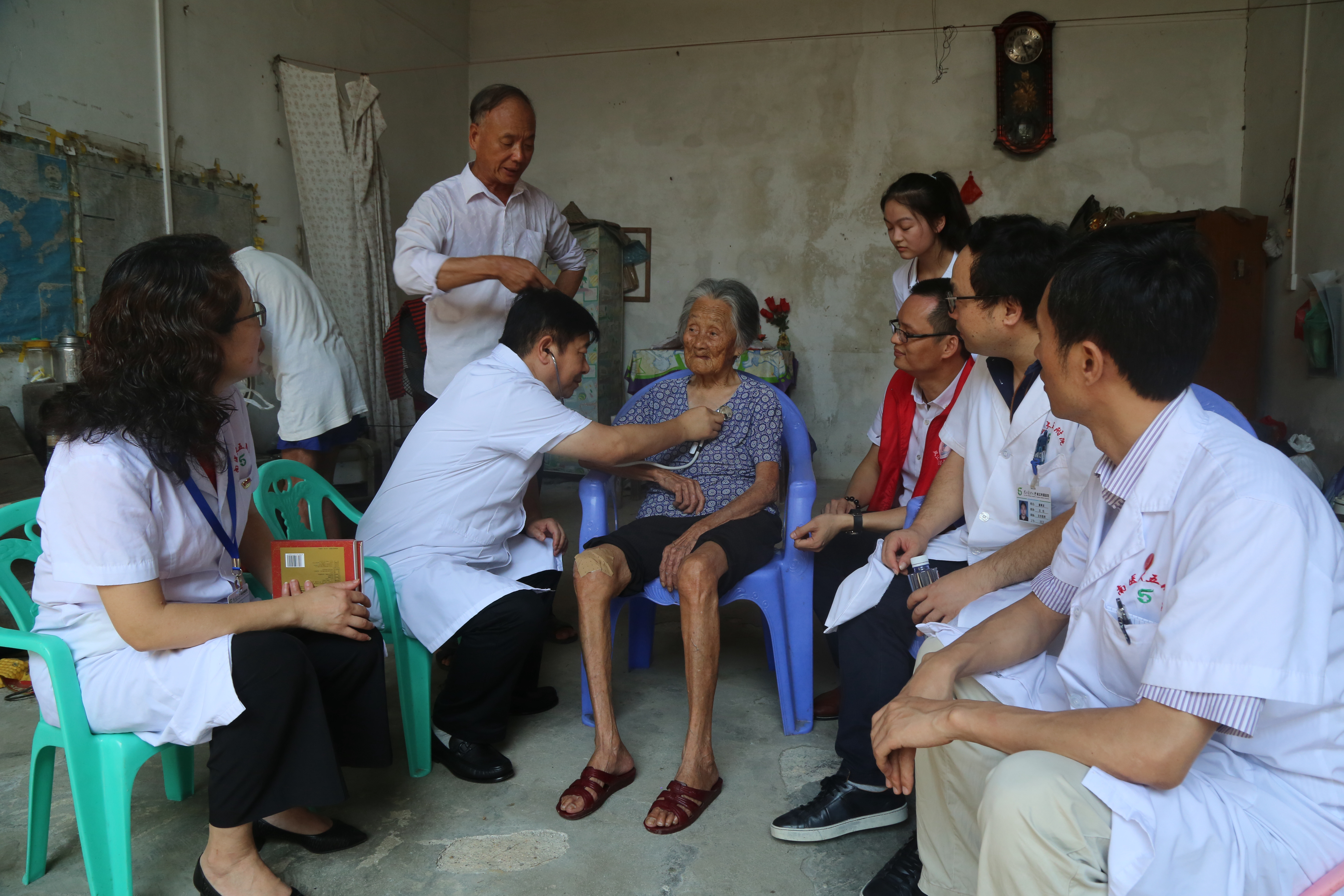 南方医科大学党委书记陈敏生在百忙之中,冒着高温酷暑赶来看望医疗专家和工作人员,让所有人倍感温暖与振奋,大家热情高涨,更加努力地投入到义诊活动中。 当邹小明得知村中98岁的侯蜜卿老人腿脚不好、出门行走不便时,当即带领专家赶到老人家,为老人检查身体,亲手为老人涂沫药品,并嘱咐老人的儿子要好好照顾她,平时有什么困难可向医院提出,此情此景,让在场的人无不感动。 义诊过程中,穿着白大衣的专家们豆大的汗珠从额头上不住地往下滴,后背的汗水透过两层衣服悄悄渗透出来,但即使如此,每个人仍面带笑容,与村民耐心沟通。他们爱民亲民的服务犹如春雨般润物细无声,滋润着村民的内心,在炎炎夏日里为村民送上一丝清凉。 赠人玫瑰,手留余香;奉献爱心,温暖民心。短短两天的义诊活动很快结束了,但是南医五院对基层百姓的关爱之心却一直延续着,像播种机一样,把健康的种子播撒到基层,并使之生根发芽。同时南医五院全心全意为患者服务的工作没有终点,将持续提高医疗技术水平,使百姓真正享受到优质的医疗服务。